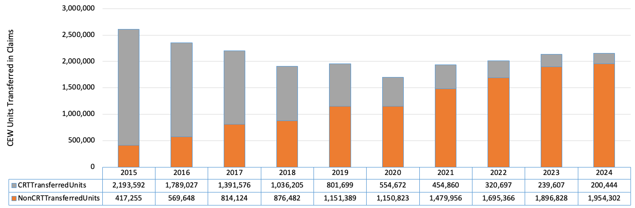 2015-2024 Units of CRT and Non-CRT CEW Transferred
